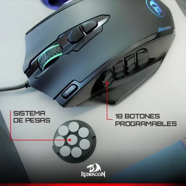 Mediante las 8 pesas de 2.4 gramos cada una, se puede controlar el peso del mouse, logrando que se adapte a la forma de juego y confort al agarre.