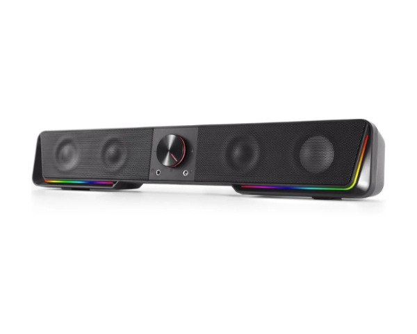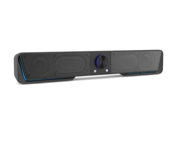 La Darknets GS570 es una barra de sonido compacta y súper potente, con compatibilidad multiplataforma y doble conectividad: inalámbrica Bluetooth 5.0 y analógica plug de 3,5 mm. Además, cuenta con retroiluminación LED RGB y un diseño al que le sobra estilo.